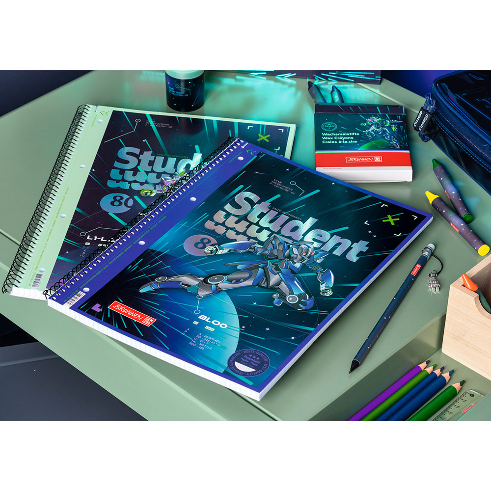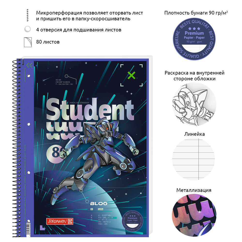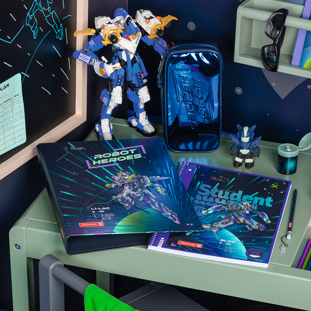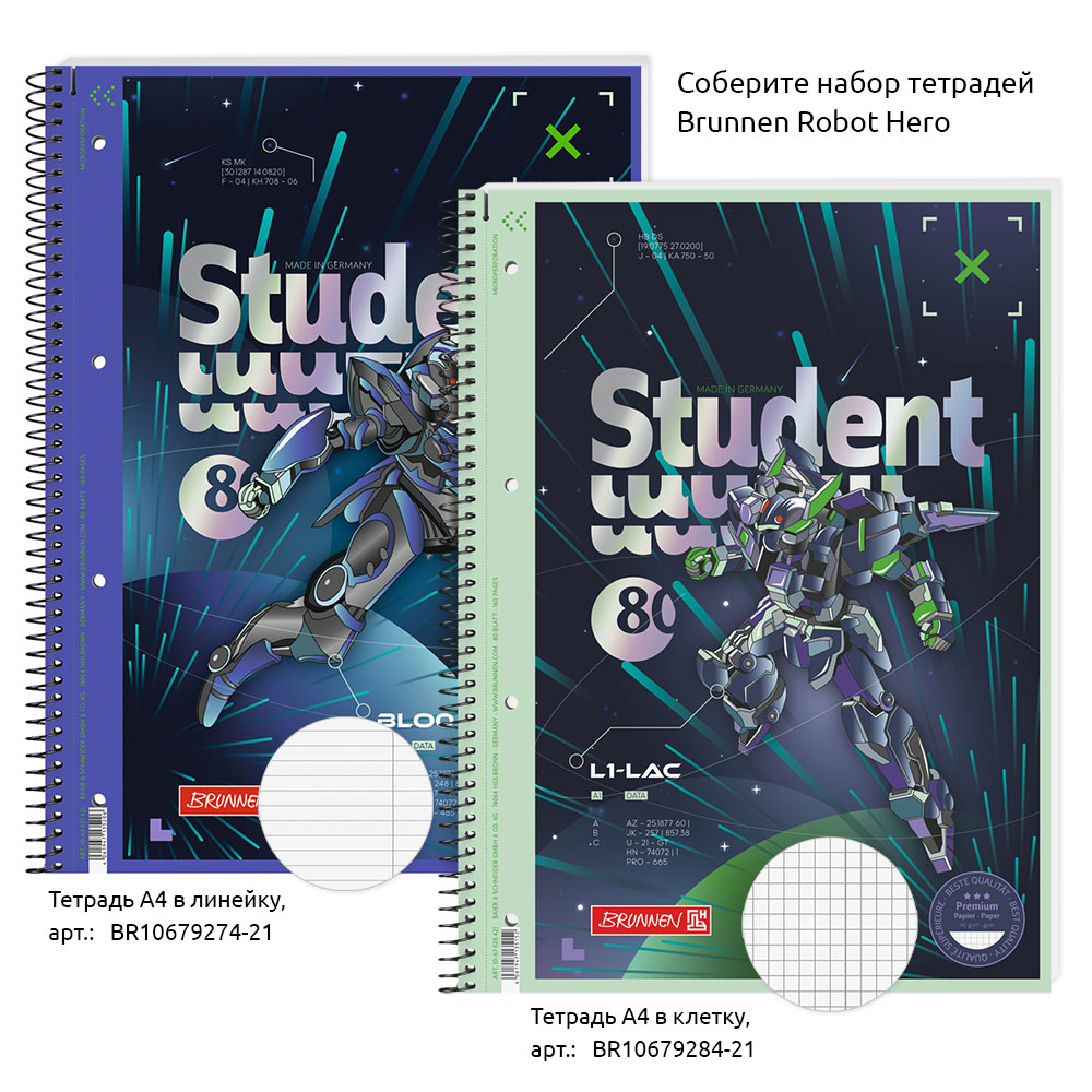 Тетрадь в линейку на пружине А4 Brunnen Premium Robot Heroes, микроперфорация, 90 гр/м2, 80 листов В линейку