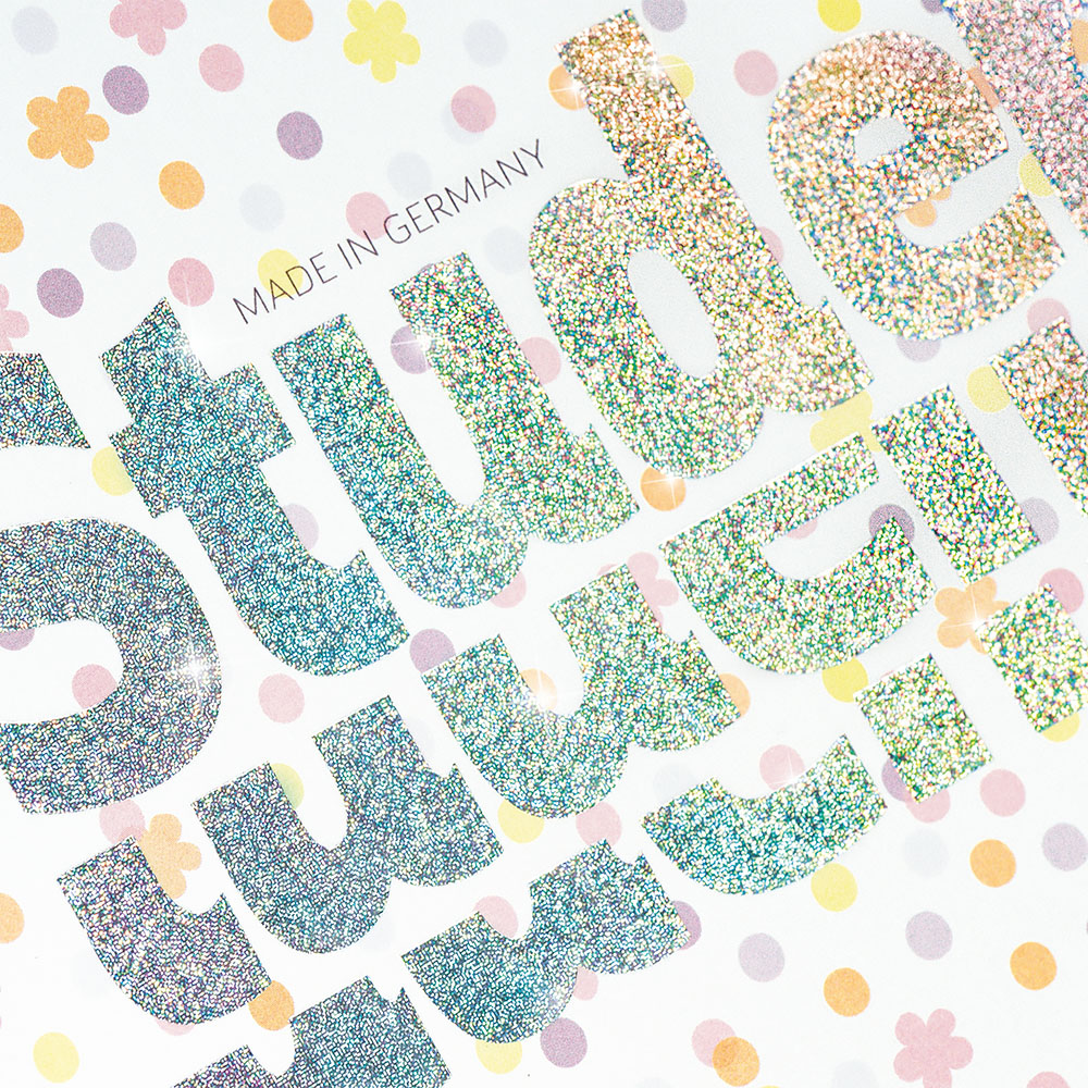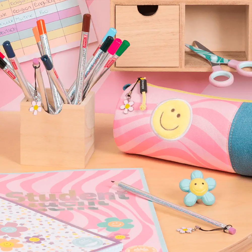 Обложка: Глянцевый картон с принтом «Смайлики цветы» у верхней обложки и плотный картон у нижней