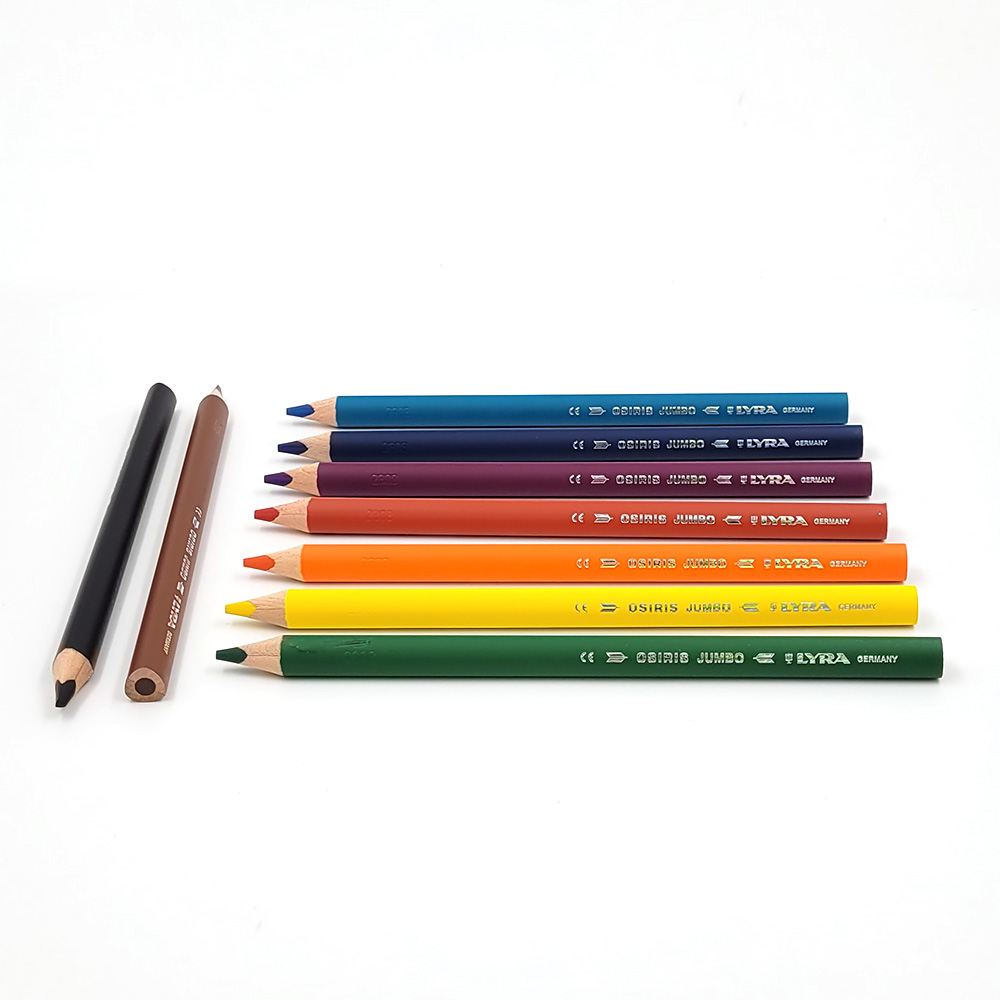 - 9 цветных карандашей Lyra Jumbo (Германия), трехгранные, большой толщины;