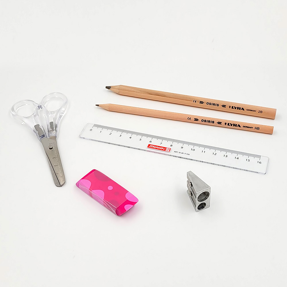 - 2 чернографитных карандаша Lyra (Германия), трехгранные, тонкий с толщиной линии HB и толстый с толщиной линии 2B;